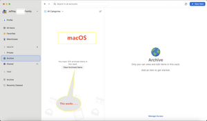 Unable to "View Archived Items" in 1PW for iOS 17.4