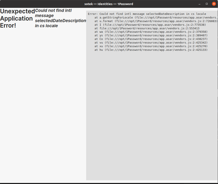 I got this error when I try to edit identity entry in 1password under Linux. Editing identity entry under Android or using web (old interface) works fine for me. Web new early access interface throws...