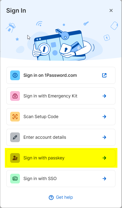 Unlock 1Password w/passkey on Windows