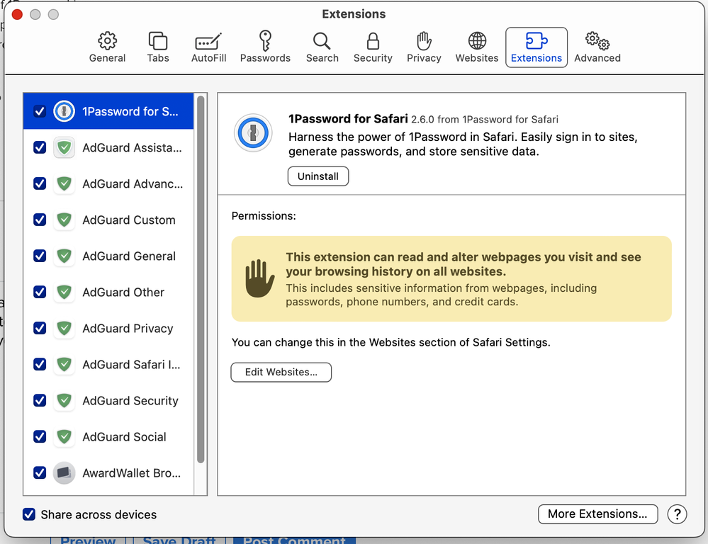 Something else that I've never understood is why I need both 1password8 for Mac and also 1password for Safari. Why wouldn't 1password for Safari work by itself? Or why wouldn't 1password8 for Mac work on any browser?