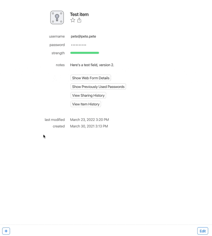 For example, at 1Password.com, you can view a given item, select View Item History, and from here you will find a menu of snapshots of your item at different points in time. You can select each one to see what the item consisted of at that date.