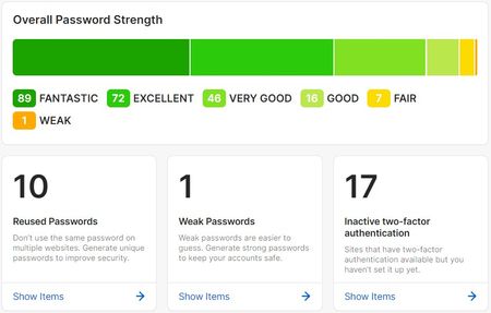 I see a differene shown between the App and what I see online, the difference reported for the reused password is troublin...