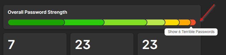 Within Watchtower, when I click a color/strength category in "Overall Password Strength", I expect that I only see e.g. the filtered 6 "terrible" items.