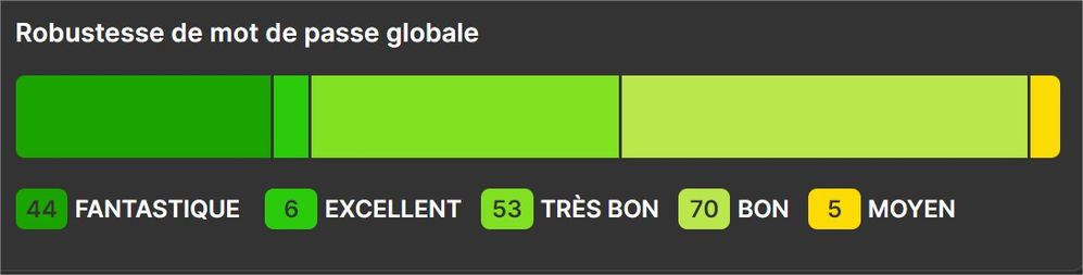 I'm not worried about the 2 weak pwd's (internal house wifi and we don't have direct neighbours :-) ) but I would like to understand what distinguishes the different types of robustness of my pwd's and improve at least the 70 "good" ones