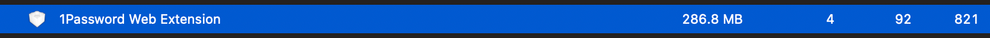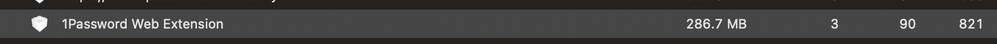 This has happened several times. The 1password we extension will consume massive amounts of memory. over 2 gig. This time I was not able to easily start my Mac from sleep mode. I had to wait a long time for the Mac to respond. It seems like the we extension just keeps consuming memory. Currently the extension is using 219.4 mb of memory.