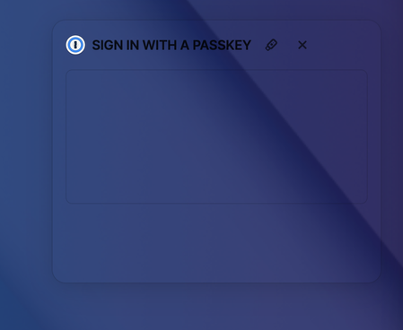 This morning, I tried logging in to a site with a Passkey. This has regularly worked for a while now, but this morning I'm seeing an empty (and transparent) Passkey dialog: . Sorry that the backgr...