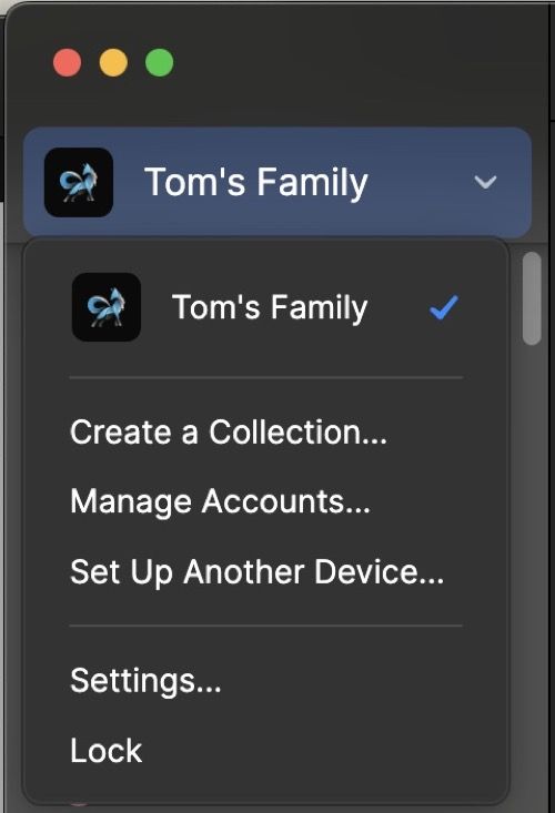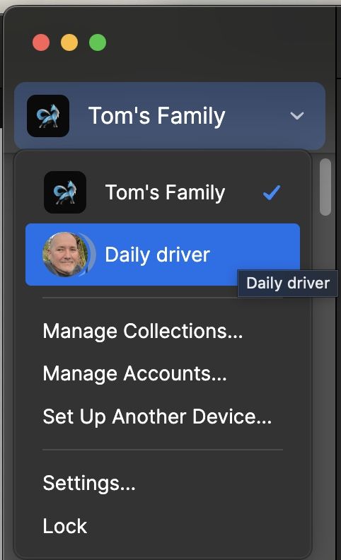 See these two things at the top left of the 1Password - would you call them accounts or users or collections?