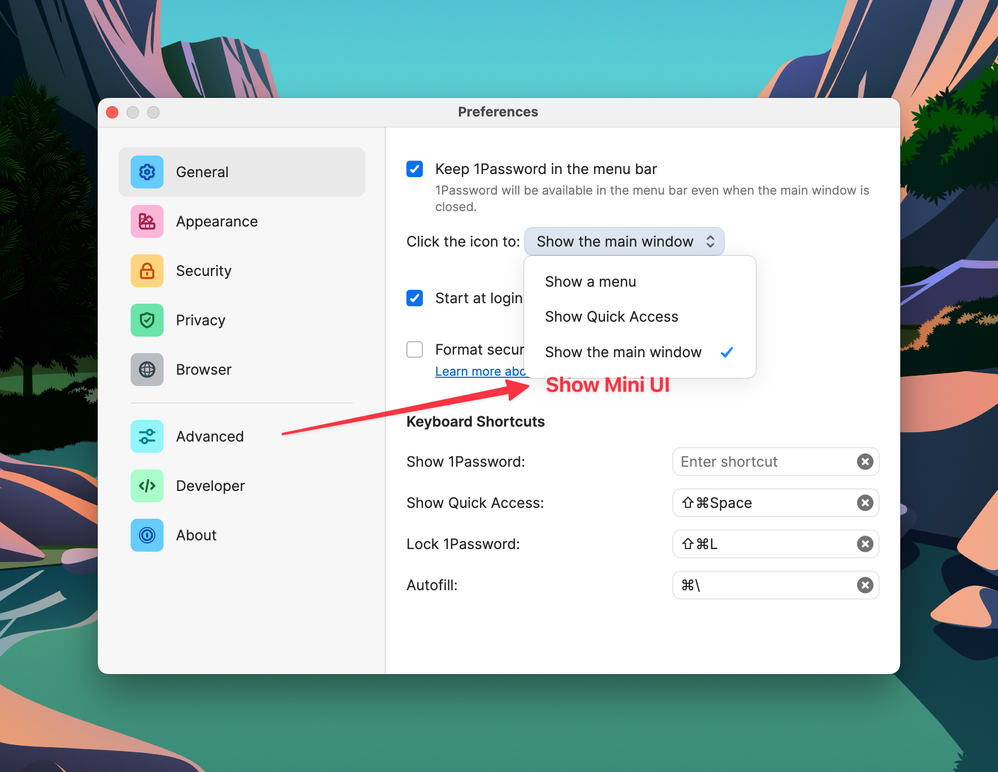 DavidB No, I'm referring to the Mini interface. Prior to 1P8, you could click the icon in the macOS menu bar and get an interface that's similar to the browser extension pop up. It was nice because it was like the browser extension pop up, except you didn't need to be in a browser. No the interface from the menu bar has been inexplicably changed to something that requires several extra steps to get to what I used to be able to get with a single click.