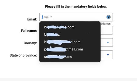 when I am on a new site a dropdown list of emails appears, always the same 5 and two are mine, two are other people I know and would have emailed and one is not even an email. see pic attached.