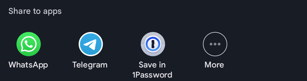 When I open the share menu on a file or image, an item named "Save in 1Password" appears.