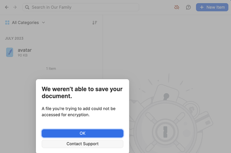 When I opened an item with a file, it said, that it couldn't sync the document and it also doesn't allow me to open the file in the item. Even after I replaced the file with another one. Also I can't...