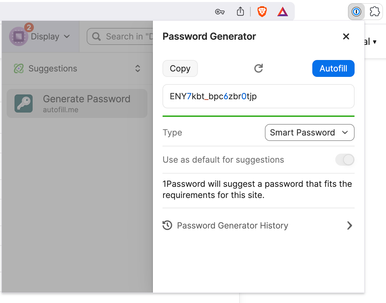 I'm sorry that 1Password doesn't always provide you with a password suggestion. When using Brave on macOS, you can find generated passwords in three different places: