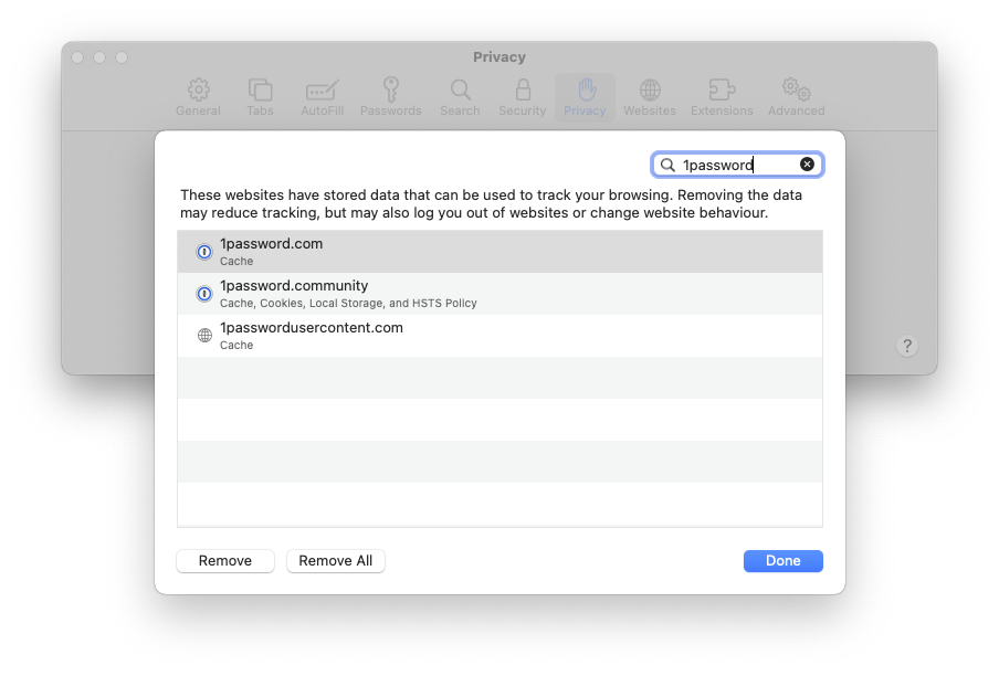 * BackspaceI don't see how any of these would be blocking 1password.com cookies?