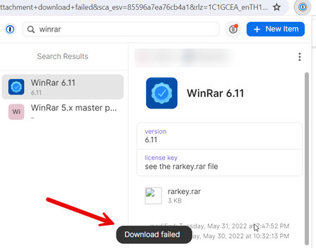 I was very scared when I opened an saved software key with an attachment via 1p chrome browser and then I get an error "download failed". This scared the crap out of me as this should be impossible...