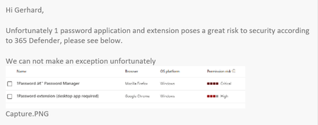 3 years agoWhy is 1Password a critical permission securtity risk according to 365 Defender?