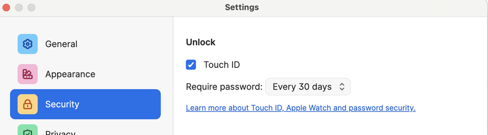 Have always used TouchID to unlock 1Password. Now, 1Password Settings only gives the option to unlock with Apple Watch.