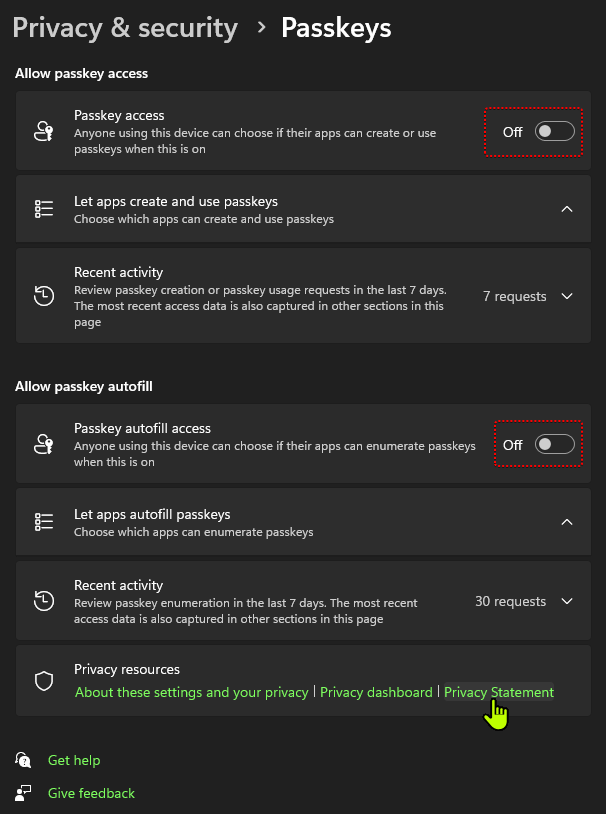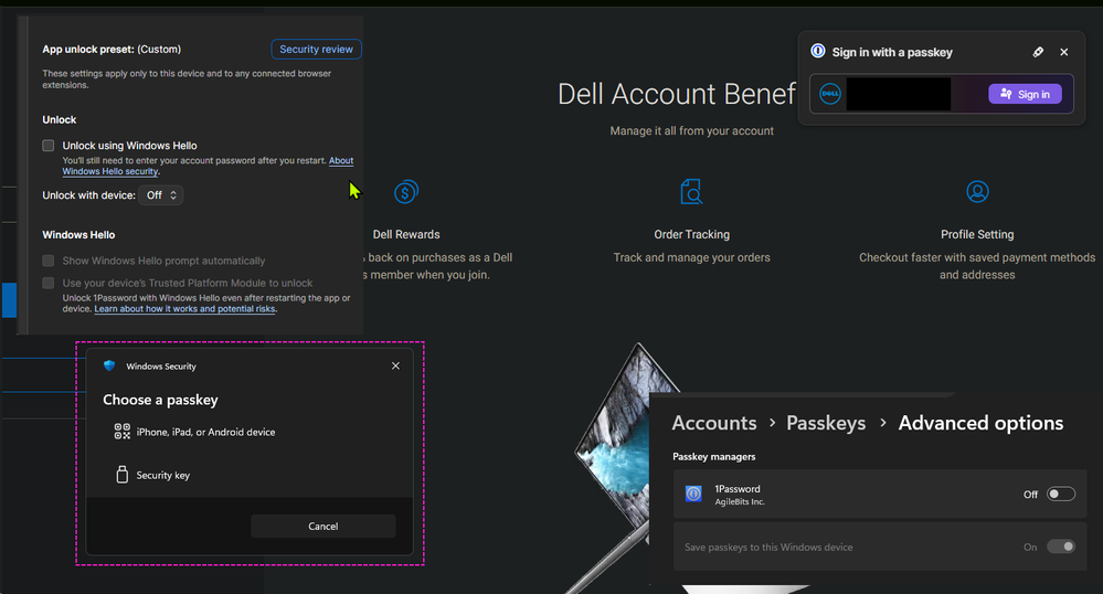 I have windows hello disabled in the settings yet it pops up everytime at dell.com (I have a passkey for dell but I do NOT want windows hello unlocking my passkeys in 1password)