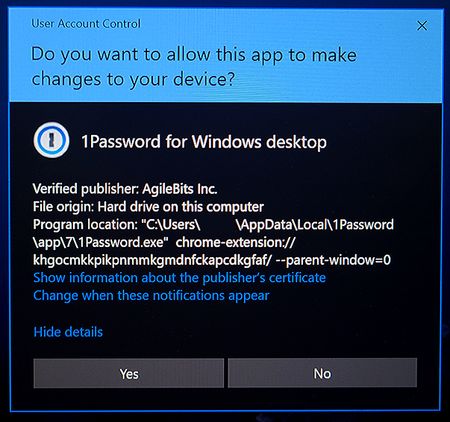 4 years agoWin 10 Chrome extension signals UAC prompt; 1Pass pop-up briefly appears & disappears