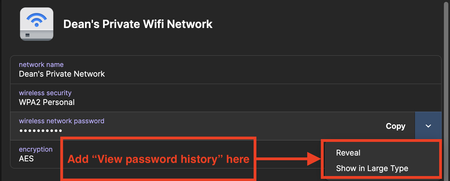 I would like to suggest an enhancement 1Password. I would like to see the Wireless router item allow the user to "View password history" for the Wireless Network Password, in the same way that the L...