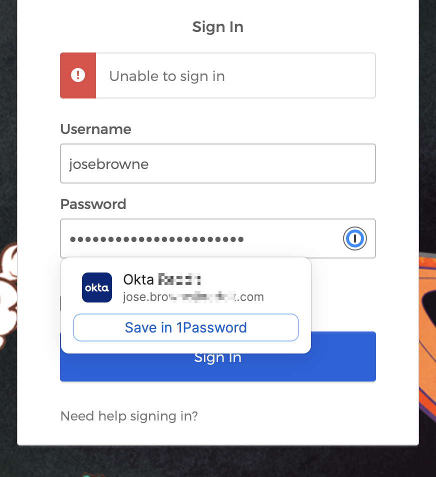 Each time I use the chrome shortcut "CMD + \" it fils in "[username]" instead of "[myemail]@gmail.com"... usually repeating or clicking into and selecting the 1password item works. But it's super annoying so wanted to try asking here to see if I could get some help.