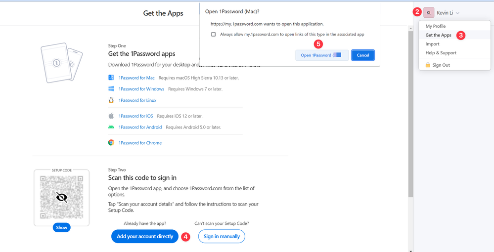 1. Allow your browser to open 1Password. You'll see your account details in the app.