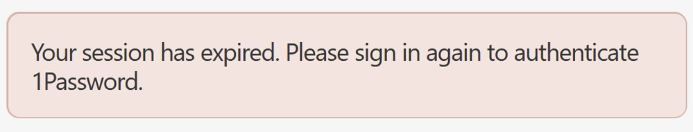 I am redirected to the login page, with the error message "Your session has expired. Please sign in again to authenticate 1Password.".