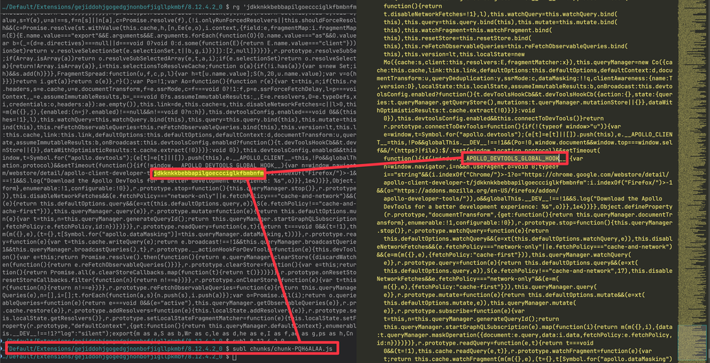 1Password's browser extension does include Apollo Client (we use GraphQL internally), so it's normal to find that string in the 1Password extension's bundled code on disk. However, while the Apollo message string does exist inside the 1Password extension, Apollo's own checks will prevent 1Password from logging that message to Chrome's dev tools console: https://github.com/apollographql/apollo-client/blob/main/src/core/ApolloClient.ts#L866-L896