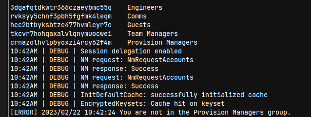 I am working on a script to provision new users, and I am having an issue with the 1Password cli. Although I am in the group "Provision Managers" it always gives me the error [ERROR] 2023/02/22 10:42:24 You are not in the Provision Managers group.