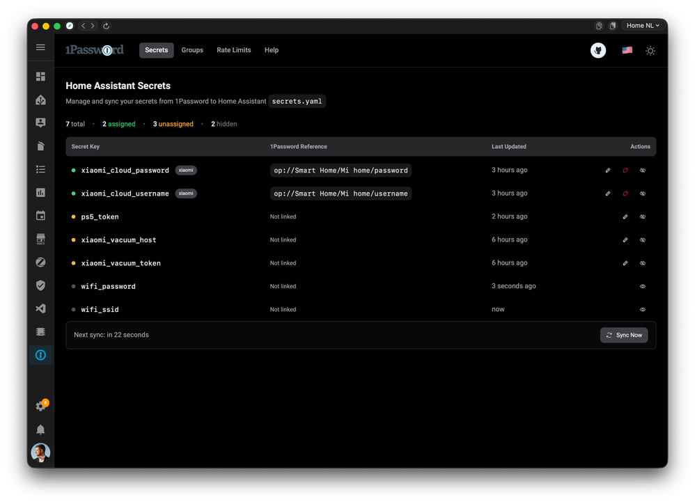 The 1Password Secrets sync app seamlessly integrates 1Password with Home Assistant, enabling automatic synchronization of your secrets from 1Password vaults directly into your Home Assistant `secrets.yaml` file. Say goodbye to manually managing sensitive credentials and embrace secure, automated secret management!