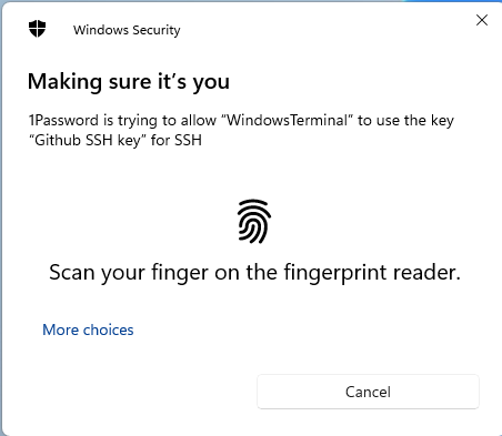 "To get your consent when an SSH client on your system tries to use one of your SSH keys, 1Password will present you with an approval dialog."