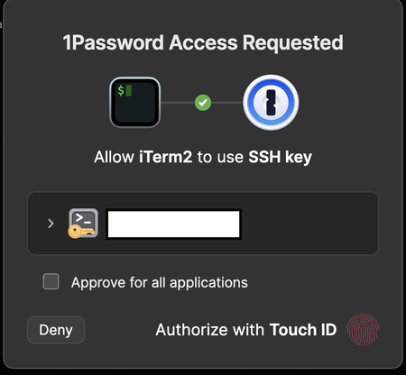 When Touch ID is active, the prompt for authorising a SSH key does not also provide the option to enter the master password. This prevents me authorising SSH key prompts if I am on a remote screen sh...