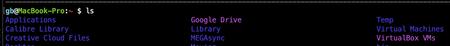 ls outputs colors, and uses multiple columns: