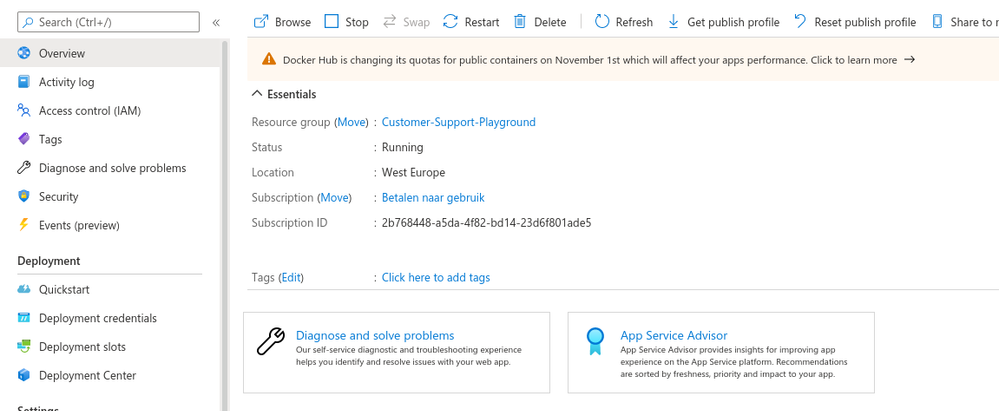 3. In Configuration, changeWEBSITES_ENABLE_APP_SERVICE_STORAGE