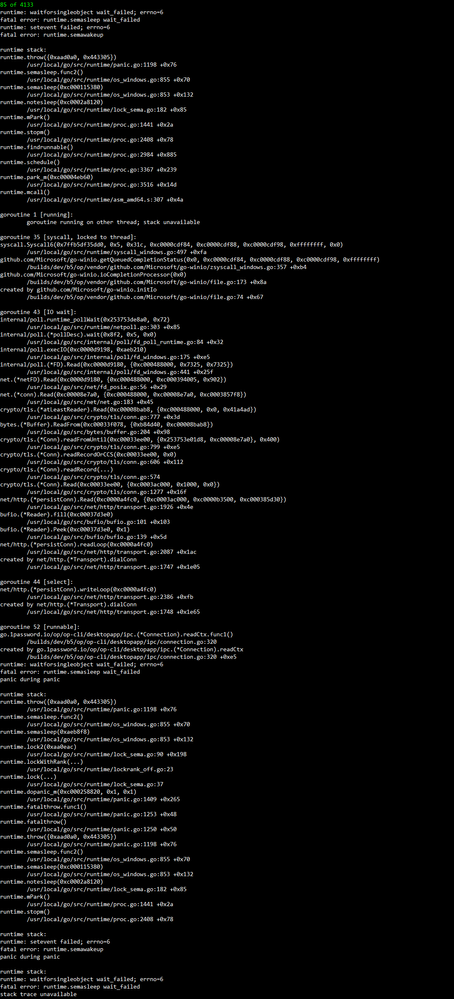 I've taken a look at the stack, and it looks like it's erroring out in the biometric auth process, in which case, concurrent attempts to send info through a named pipe may have caused the error. Do you have biometric auth turned on, and if so, has