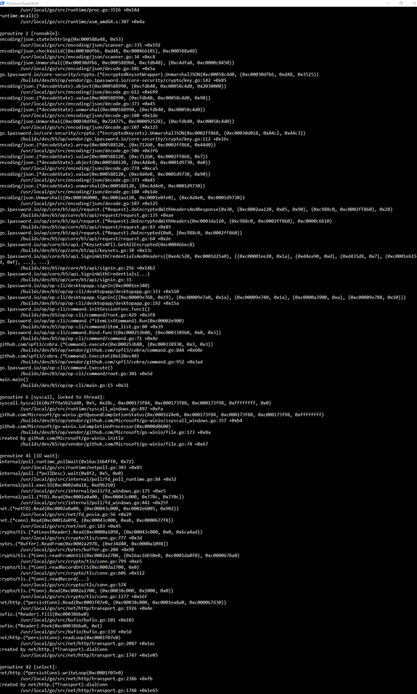 Quick question for you: Why am I getting random errors like those pictured (there are others where it says something to the effect of errors with tcp to xxx.xxx.xxx.xxx [assuming 1password server], and others about secure key error or the software terminated [i will try to capture some of them but haven't yet])? I cannot make sense of it because I have gotten them even at the beginning of the script where its getting the $vaultdetails or $vaultitems.