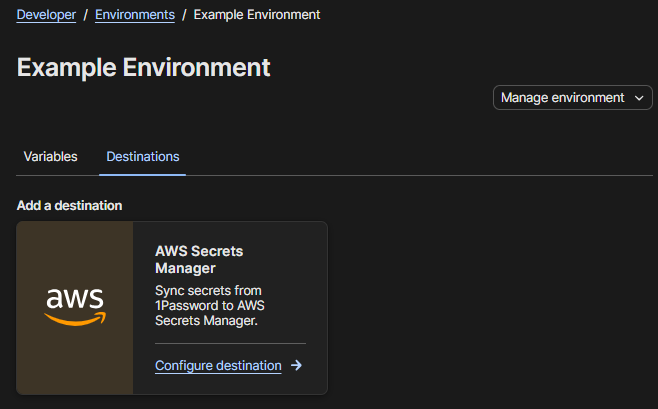 The only options I have is AWS Secrets Manager.
