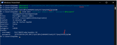 i try to update an item password with 1Password Cli which has a " Character in it. This character is removed from password when the password is written to the vault. I've tried already some va...
