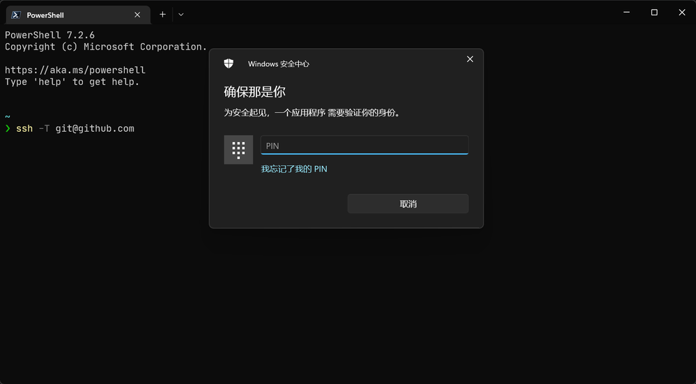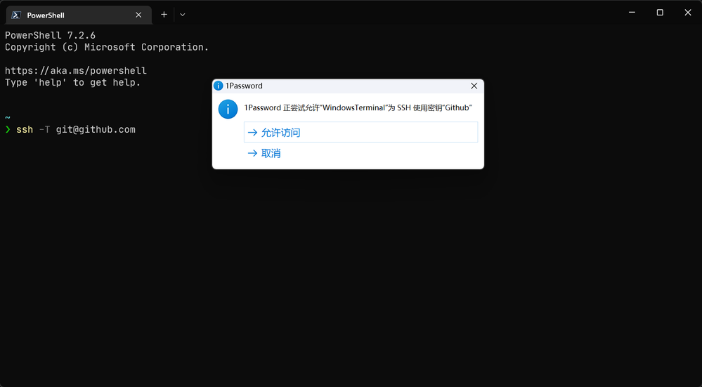 In a previous version, there was only the Windows Hello prompt showing the application requesting the ssh key, which I only need to click once for authorization.