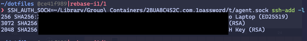 $ SSH_AUTH_SOCK=~/Library/Group\ Containers/2BUA8C4S2C.com.1password/t/agent.sock ssh-add -l
