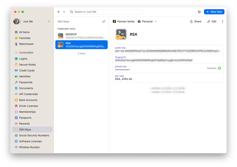 Firstly, my SSH keys are in my Family → Personal vault. (I know that a lot of previous posts missed this.)