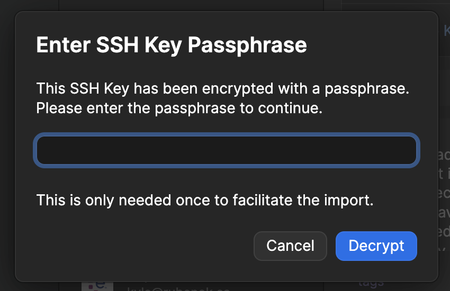 When trying to import a private key that has no passphrase, I am unable to continue beyond this screen: