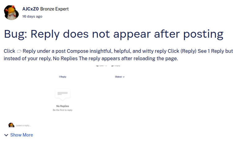 With no ⌄ Show More and no replies, I see the ordered list in this post.