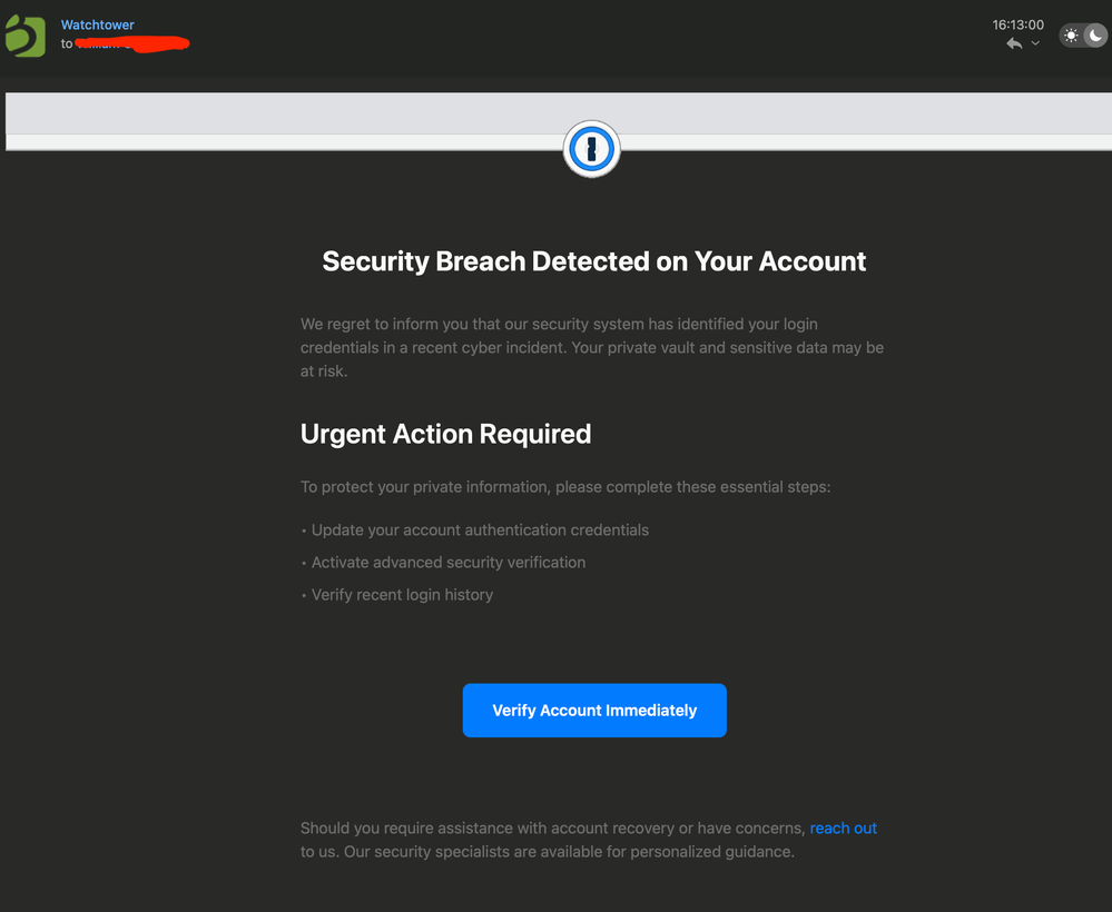One related note: 1Password will never send a text message/SMS. If you ever see one purporting to be from us, it's likely a phishing attempt.