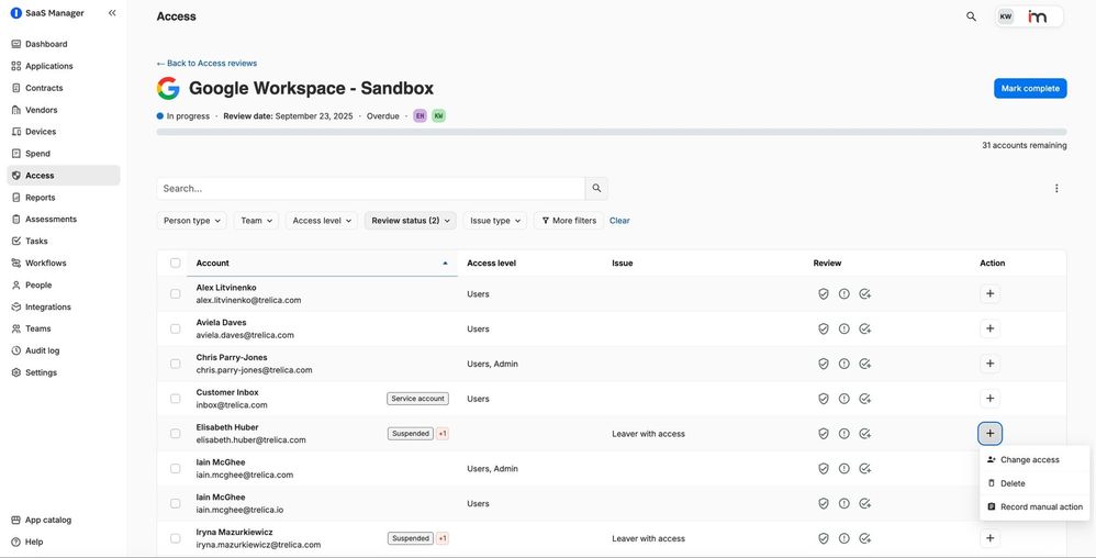 1Password SaaS Manager simplifies this process by centralizing access reviews, automating the operational work, and delivering the complete, auditable evidence that app owners, IT managers, security engineers, and GRC teams need to stay compliant.