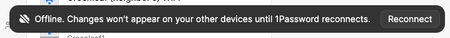 I'm suddenly getting notifications in my 1Password for Mac desktop application saying: "Offline: Changes won't appear on your other devices until 1Password reconnects." Also, the red cloud with a slash through it is displaying at the top of my 1Password desktop application. The funny thing is: it's actually syncing with my iOS 1Password apps, even though they are showing the same error message. (And I'm definitely connected to the internet on all devices.) I'm currently running 1P v8.10.0 for iOS. (How can I set it for the Beta channel?) One thing to note: Since I use 1Password to share technical account info with my clients, I'm connected to over a dozen of my clients' 1Password accounts with over 3K entries. I'm a heavy 1Password user, so I'm confident this only started happening in the past few days. Thanks! Tony 1Password Version: 8.10.1 BETA Extension Version: 2.7.0 OS Version: macOS 12.6.3 Browser:_ Chrome12KViews0likes3CommentsLocal Vault