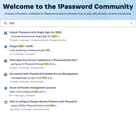 Whether you’re troubleshooting an issue, exploring new features, or just looking for inspiration, there are several ways to find what you need in the 1Password Community. Use the Search Bar Start by using the Search bar at the top of the page. It’s the quickest way to find relevant posts, discussions, and guides. 💡 Pro Tip: Use specific keywords (like “vault sharing” or “two-factor authentication”) to narrow down your results. Browse Categories and Tags Explore our categories to dive into discussions by topic. From app-specific questions to general product feedback, categories help you find conversations that matter to you. The Lounge: Share ideas or learn from other users’ experiences. Password Manager: Dive into conversations about the 1Password app everywhere it’s available. Device Trust: Jump into extended access management and authentication within 1Password. Passage: Explore and shape the future of passwordless authentication with 1Password. Developers: Collaborate on integrations, SDKs, and developer tools. Champions: Connect with top contributors and advocates of 1Password. 💡 Pro Tip: You can also explore tags to quickly discover posts on specific topics.55Views1like0CommentsYour role in the community