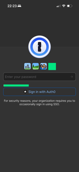I have four 1Password accounts, one of which requires auth0 by my employer. Normally, the other accounts unlock using Face ID (on iOS), and that one account remains locked until I do run through auth0. But today, I'm locked out of all accounts by the auth0 page. There are no buttons to click, no options that I can see. The app literally won't show me anything other than this screen. This is a major problem, because if I was fired by my employer, I would lose access to all my other accounts! This has been working fine with the same setup for several months. I don't know why the behavior changed today. In this case, I have not been fired, so I could simply login with auth0. But since I still have access to all the accounts on another device, so I'm going to leave it like this for now and see if 1Password support can help.Solved29Views0likes3CommentsMultiple Business Accounts Logged in (one) 1Password.app