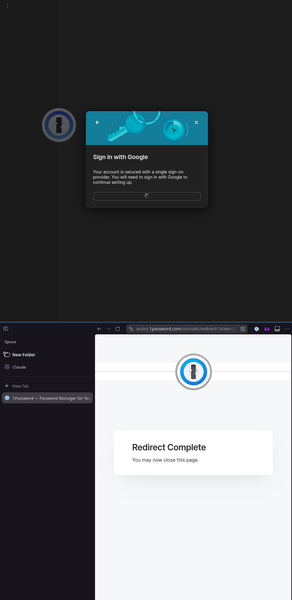 When trying to log in on an account behind Google SSO for business account on Linux, after I see the "Redirect Complete You may now close this page, my app just hang's on a spinner. 22:52:32 $ uname -srm Linux 6.14.0-37-generic x86_64 22:52:33 $ 1password --version 8.12.10 INFO 2026-04-20T02:47:03.526+00:00 runtime-worker(ThreadId(48)) [1P:app/op-app/src/app/backend/sso/oidc_verify.rs:87] SSO Authentication -- verifying OIDC redirect. INFO 2026-04-20T02:47:03.526+00:00 runtime-worker(ThreadId(48)) [1P:app/op-app/src/app/backend/sso/oidc_verify.rs:101] SSO Authentication -- sending a notification to B5x to close the identity provider's sign-in tab. INFO 2026-04-20T02:47:03.526+00:00 runtime-worker(ThreadId(48)) [1P:app/op-app/src/app/backend/sso/oidc_verify.rs:191] SSO Authentication -- calling B5's oidc/verify endpoint INFO 2026-04-20T02:47:03.811+00:00 runtime-worker(ThreadId(48)) [1P:app/op-app/src/app/backend/sso/oidc_verify.rs:1106] SSO Authentication -- B5 did not find device credentials for this user/account/device. Beginning enrollment. INFO 2026-04-20T02:47:03.811+00:00 runtime-worker(ThreadId(48)) [1P:app/op-app/src/app/backend/sso/mod.rs:789] Native messaging is not available, cannot use extension first SSO flow INFO 2026-04-20T02:47:03.811+00:00 runtime-worker(ThreadId(48)) [1P:app/op-app/src/app/backend/sso/oidc_verify.rs:795] SSO Authentication -- generating a device key for a new SSO device enrollment. INFO 2026-04-20T02:47:03.811+00:00 runtime-worker(ThreadId(48)) [1P:app/op-app/src/app/backend/sso/oidc_verify.rs:798] SSO Authentication -- attempting to begin device enrollment.4Views0likes0CommentsRemote Linux machine opens GUI